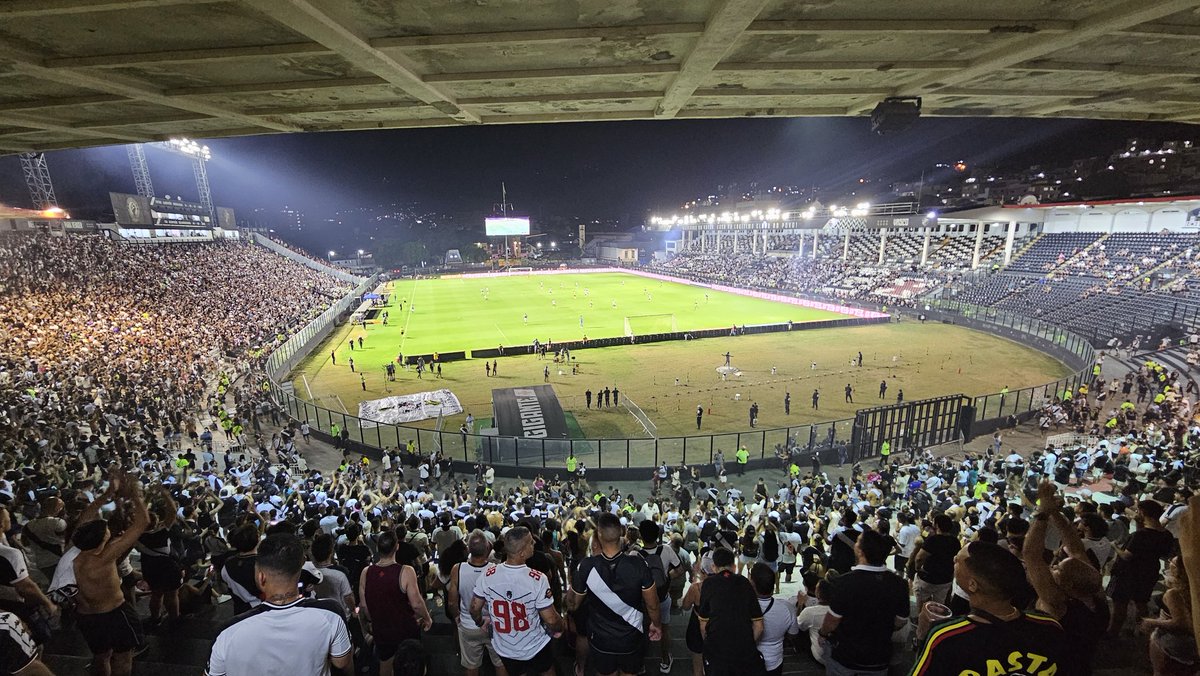 Bola rolando em São Januário para Vasco x Vitória. Até que a arquibancada encheu bem, mas setores VIP e Social vazios.