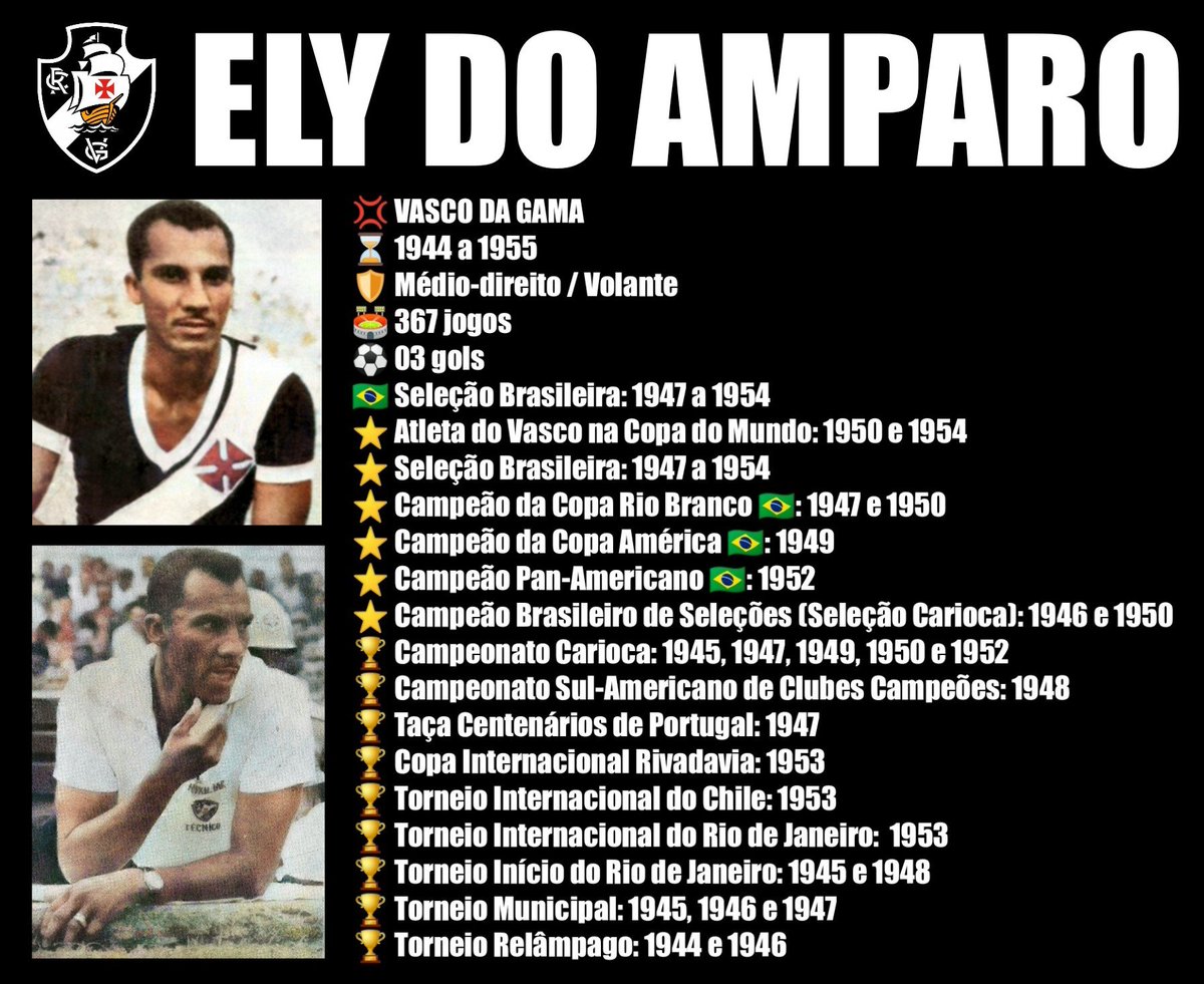 Há 103 anos nascia o ídolo Ely do Amparo, dos grandes nomes do Expresso da Vitória e atleta de 2 Copas do Mundo. Formou famosa linha média com Danilo Alvim e Jorge. Depois que se aposentou no Sport no final dos anos 50, foi técnico interino por longos anos no Vasco. Faleceu 1991.