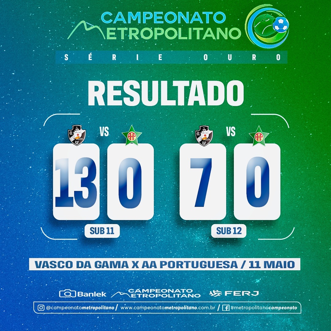 Pela Taça Guanabara, Vasco goleia a Portuguesa por 13 a 0 no Sub-11 e por 7 a 0 no Sub-12