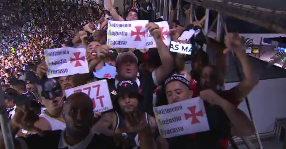Quem foi a São Januário aproveitou para protestar. Um grupo de torcedores levou cartazes em protesto à 777 Partners, grupo que gere o futebol do Vasco. Com xingamentos e pedidos de saída, a empresa foi alvo de críticas.