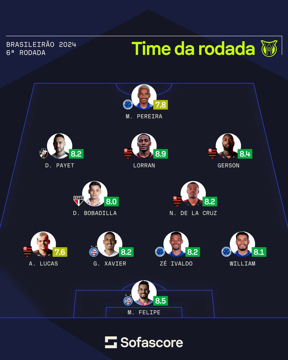 Seleção Sofascore da 6ª rodada do @Brasileirao 2024! O que acharam? 🤔🤔