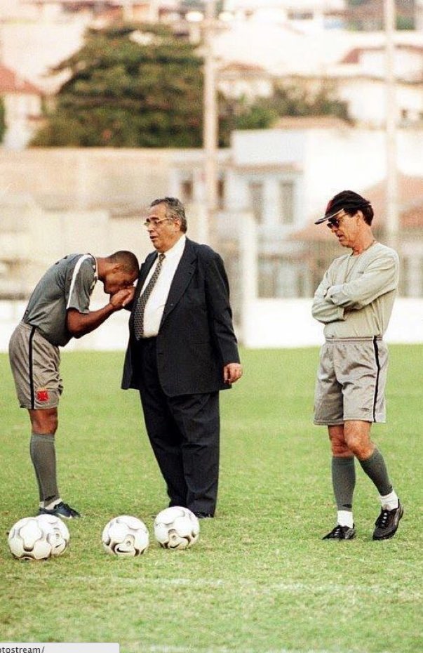 Donizete Pantera beija a mão de Eurico Miranda durante treino do @VascodaGama em 2003.