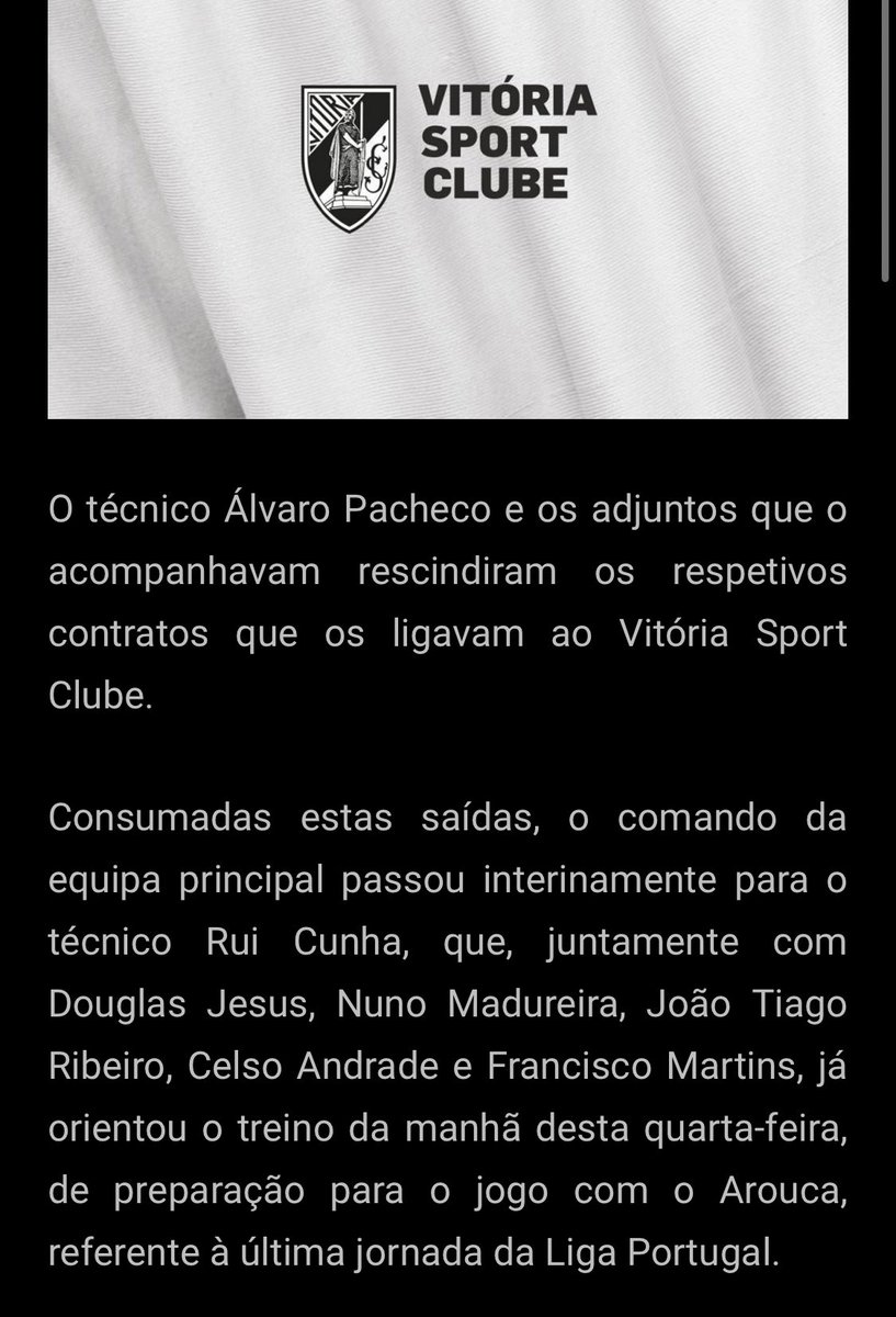 🚨| Em nota oficial, o Vitória SC confirma a saída de Álvaro Pacheco e toda sua comissão técnica.