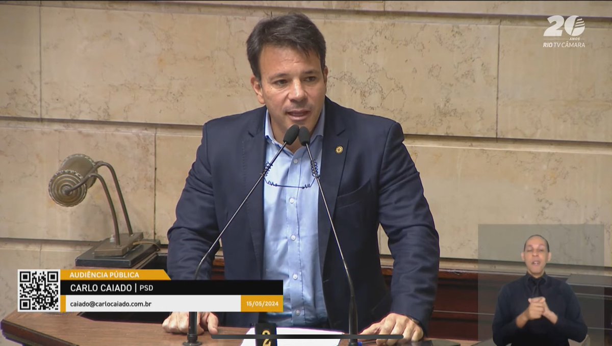 Carlo Caiado (PSD), vereador da cidade do Rio de Janeiro e torcedor do Fluminense, discursa a favor da reforma de São Januário na Câmara.