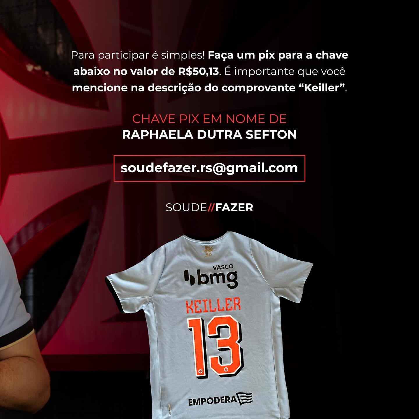 - Enviar o pix no valor de R$50,13 para a chave e-mail