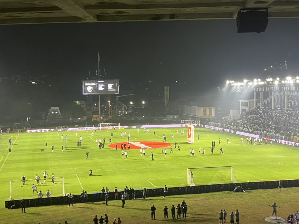 Jogadores de Vasco e Fortaleza se aquecem no gramado de São Januário