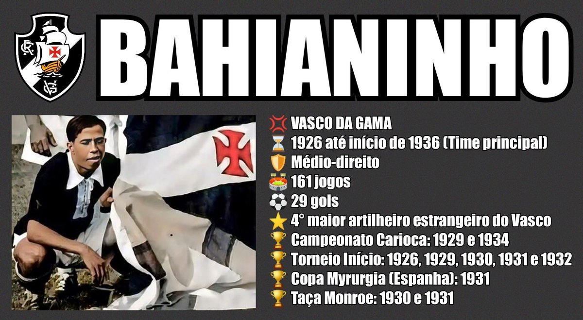 22/5/1906- Nascia o português Daniel Augusto Madaleno, o Bahianinho. Chegou ao Brasil aos 2 anos e apelido por ajudar uma baiana a vender doces no RJ. Era tido o mais jovem (14 anos) atuar no profissional do Vasco em 1926, mas na verdade tinha 20 anos.