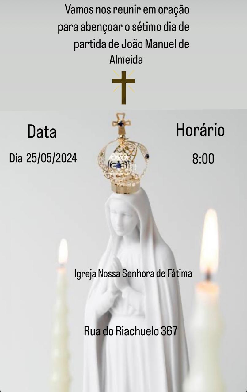 Missa de 7º dia do grande benemérito João Manuel de Almeida será neste sábado às 8h na Igreja Nossa Senhora de Fátima