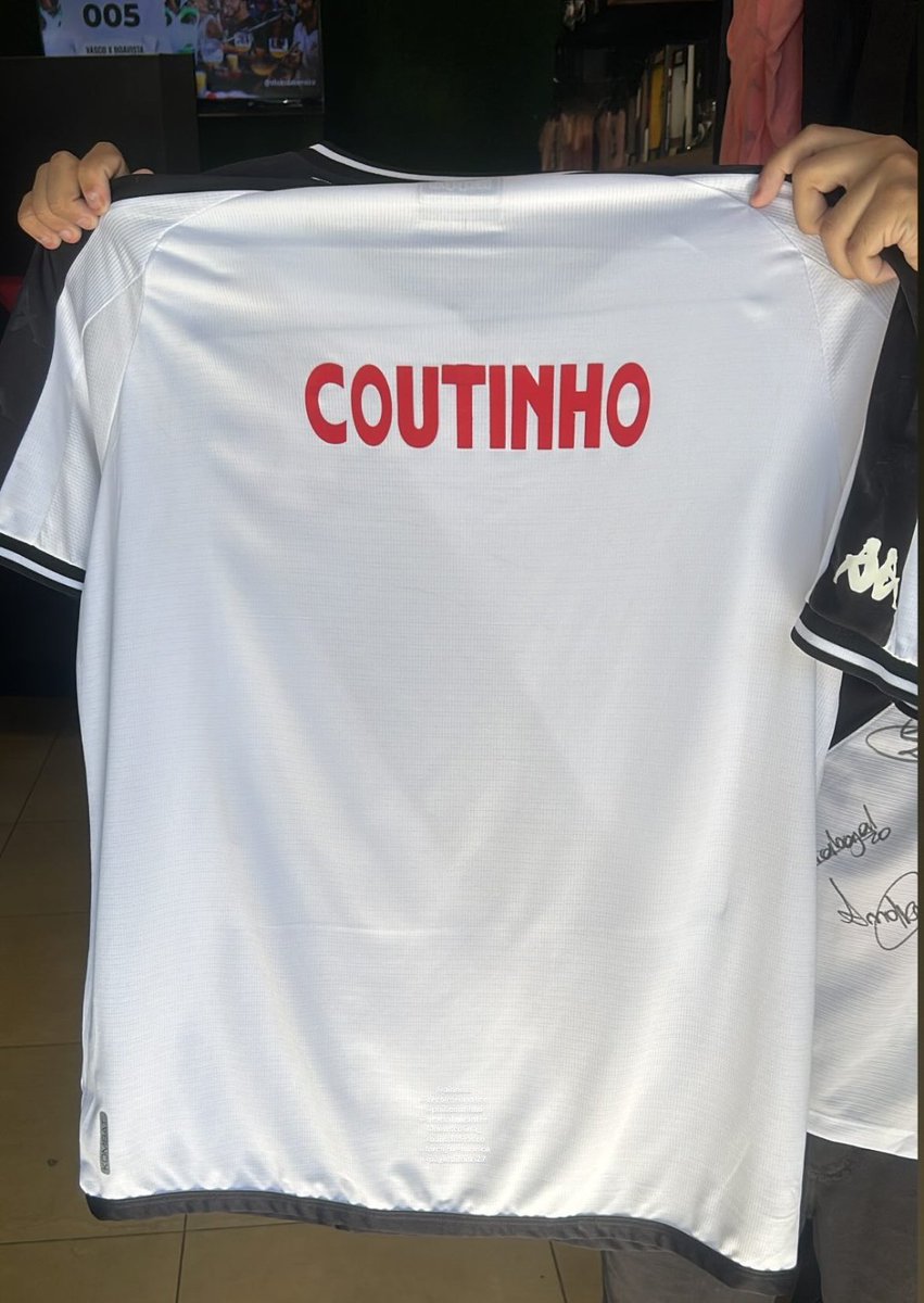 Como o Vasco está tentando fazer a contratação do @Phil_Coutinho, tem torcedor já se antecipando e mandou fazer uma camisa na Loja Gigante da Colina, no Shopping Aerotown, na Barra da Tijuca, em homenagem ao Cria da Colina!