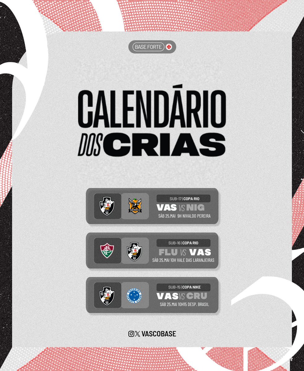 📺 Com VascoTV, o Sub-17 recebe o Nova Iguaçu pelo jogo de ida das semifinais da Copa Rio, às 9h.
