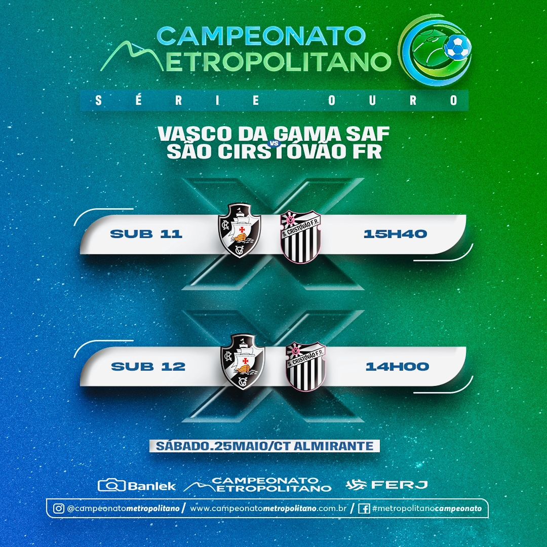17/05/24 - Pela Taça Guanabara, Vasco enfrenta o Mendanha no Sub-11 e no Sub-12 e o São Cristóvão no Sub-13 e no Sub-14 neste sábado