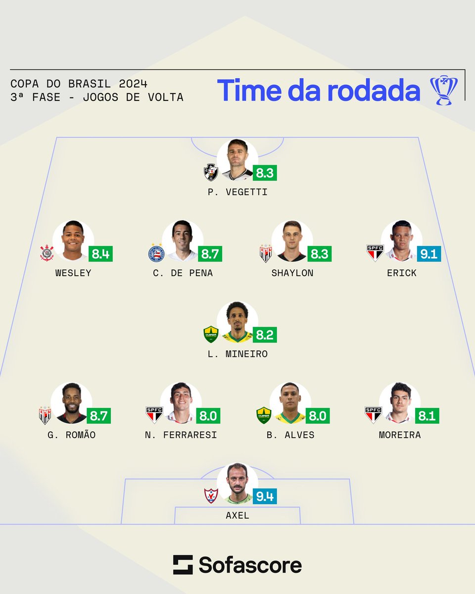 Vegetti está presente na seleção @SofascoreBR da terceira fase da Copa do Brasil.