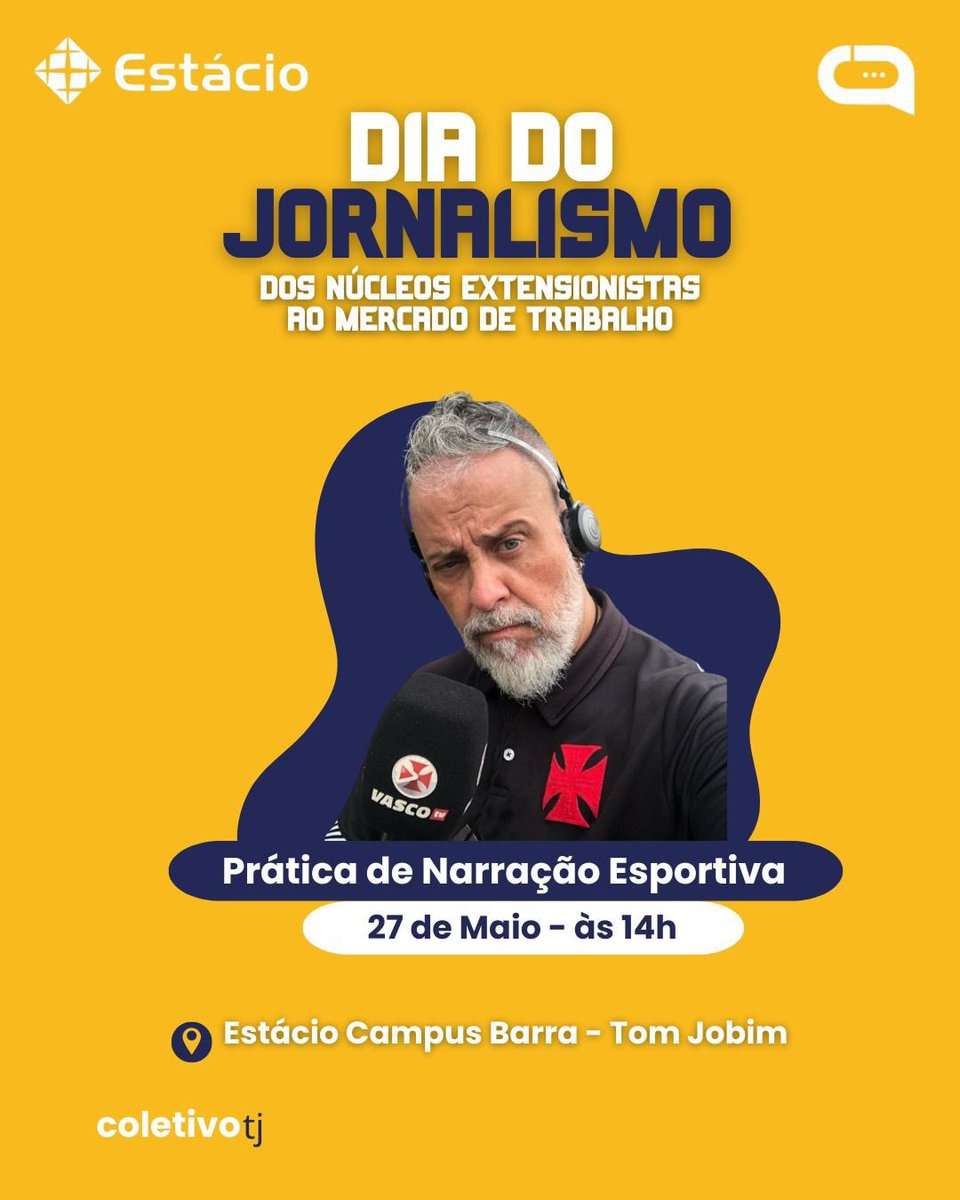 Narrador da VascoTV, Alex Calheiros fará palestra nesta 2ª-feira na Universidade Estácio de Sá