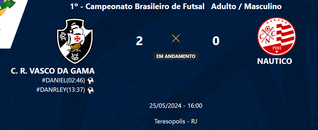 Futsal: Intervalo em Teresópolis; Vasco vai vencendo o Náutico por 2 a 0