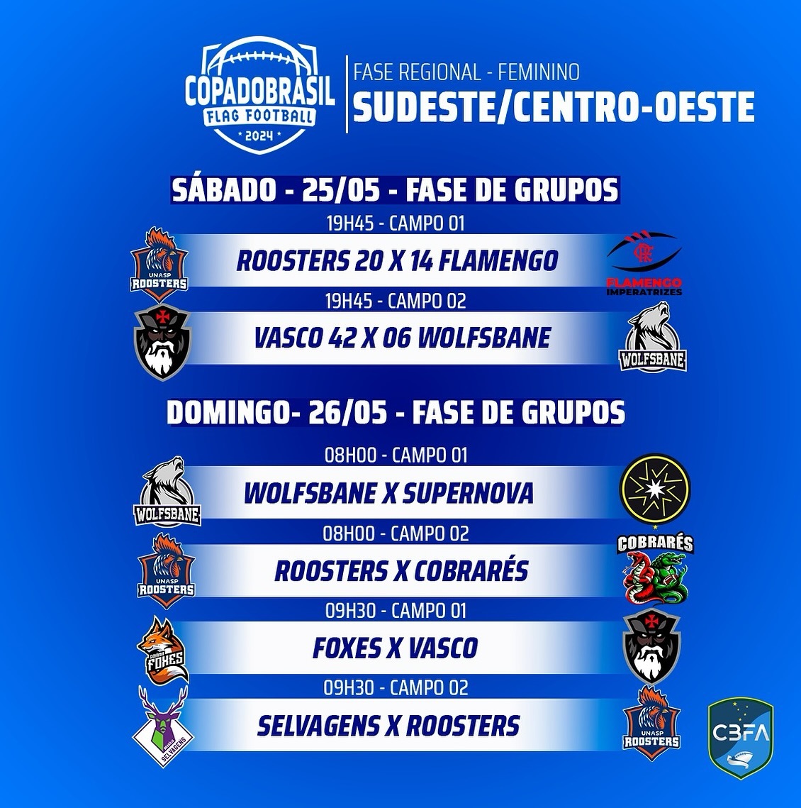 Primeiro dia de jogos da fase grupos do Regional Sudeste/Centro Oeste encerrado ✅