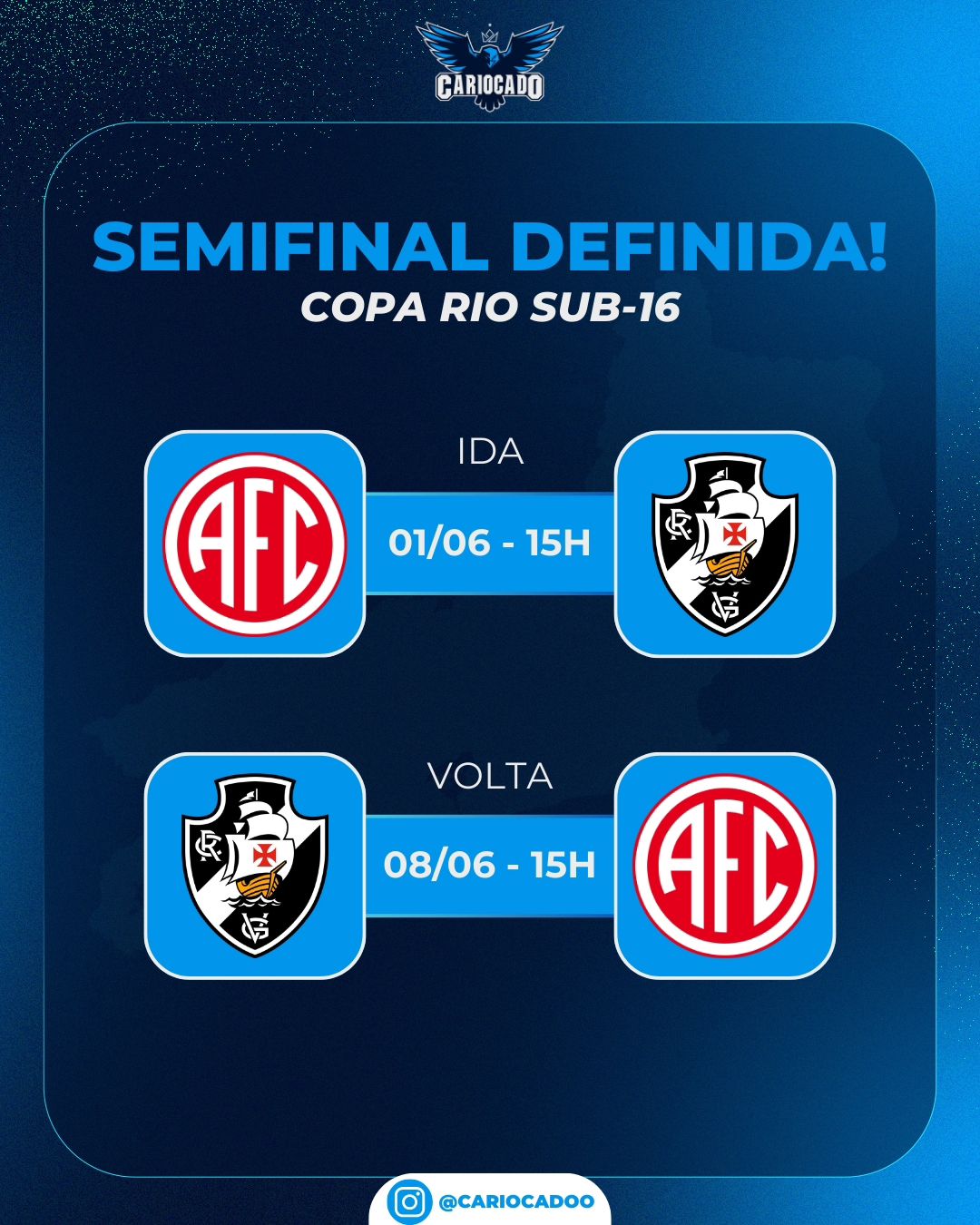CONFRONTOS DEFINIDOS! ✅️🔥 Confira as datas e horários previstos para as semifinais da Copa Rio sub-16.