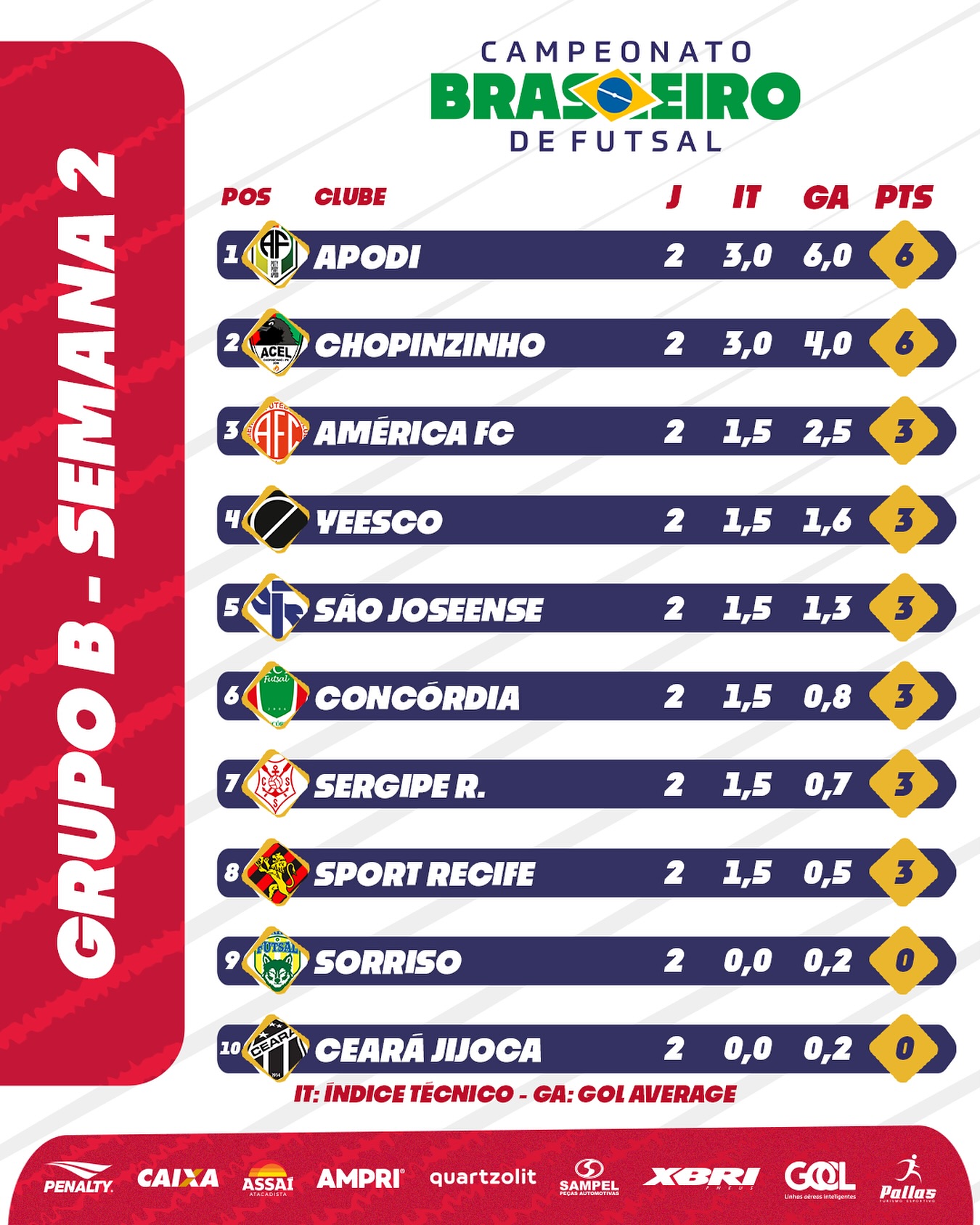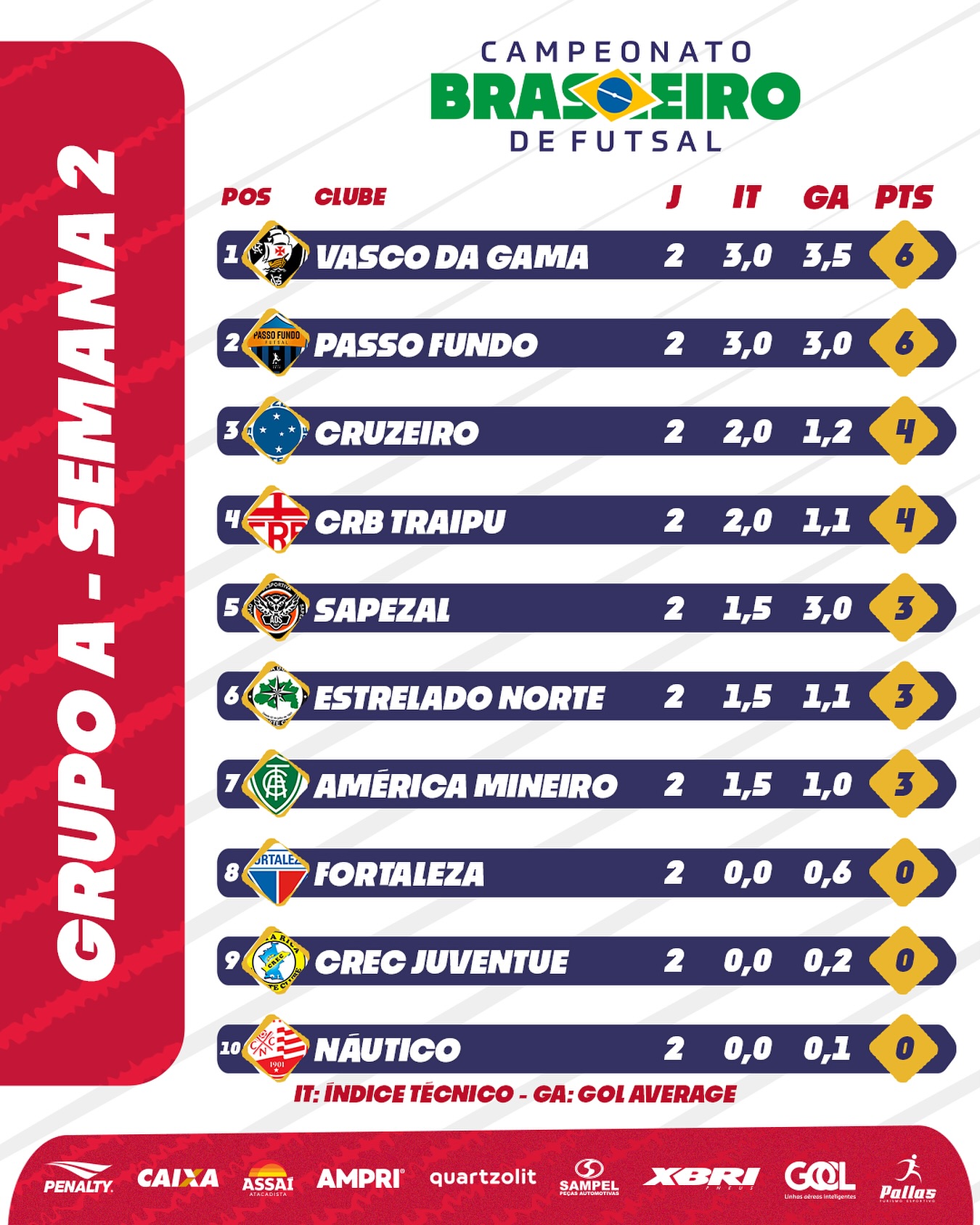 Náutico, o Vasco lidera seu grupo no Campeonato Brasileiro de Futsal. Confira a classificação:
