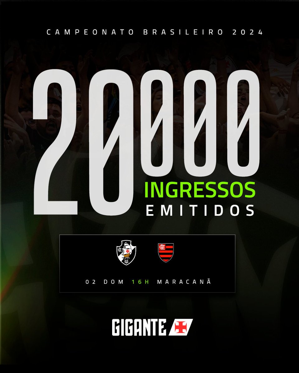 Já foram emitidos 20 mil ingressos para Vasco x Urubu