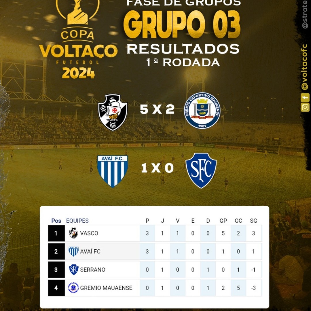A equipe Sub-14 do Vasco derrotou na segunda-feira o Grêmio Mauaense por 5 a 2 na estreia da Copa Voltaço e lidera o seu grupo. Nesta terça-feira, o Gigante da Colina enfrentará o Serrano às 10h30 pela segunda rodada da competição.
