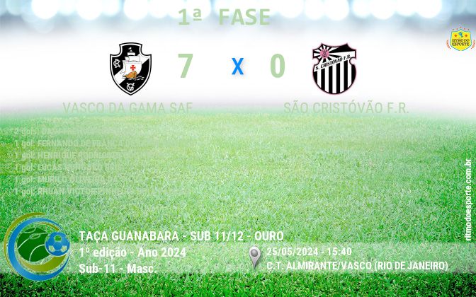 21/05/24 - Pela Taça Guanabara, Vasco empata com o São Cristóvão no Sub-13 e vence no Sub-14