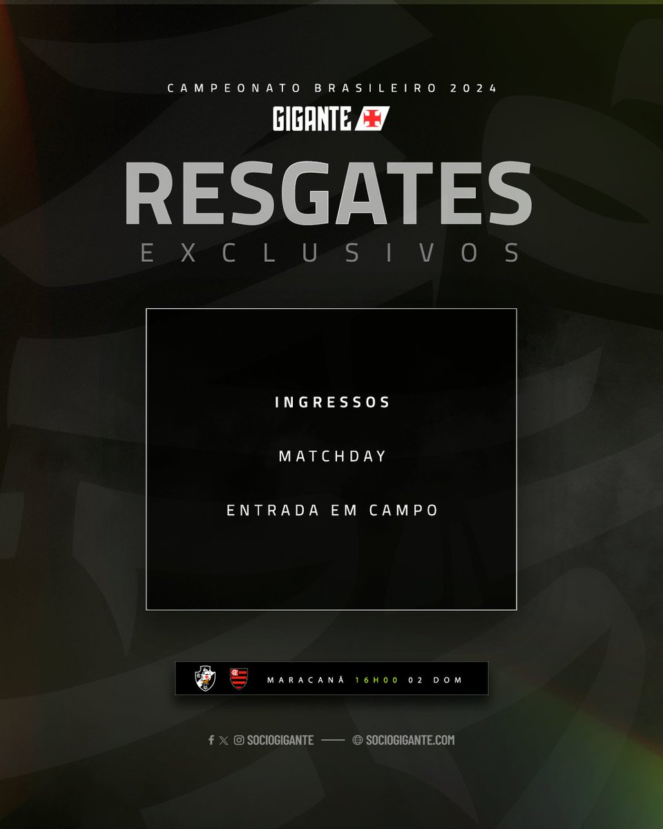 Resgates exclusivos para VASCO DA GAMA x Flamengo 💢