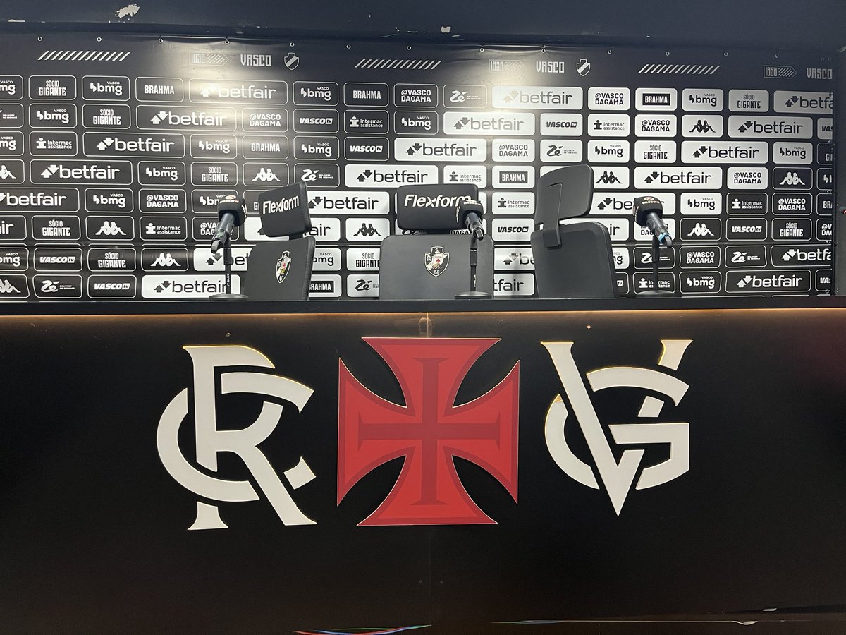 Sala de imprensa de São Januário já está preparada para apresentações de Pedro Martins e Álvaro Pacheco