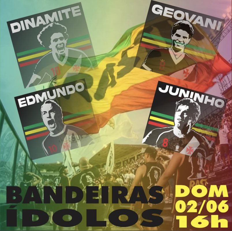 Rasta do Vasco exibirá bandeiras em homenagem a Dinamite, Edmundo, Geovani e Juninho no clássico diante do Urubu