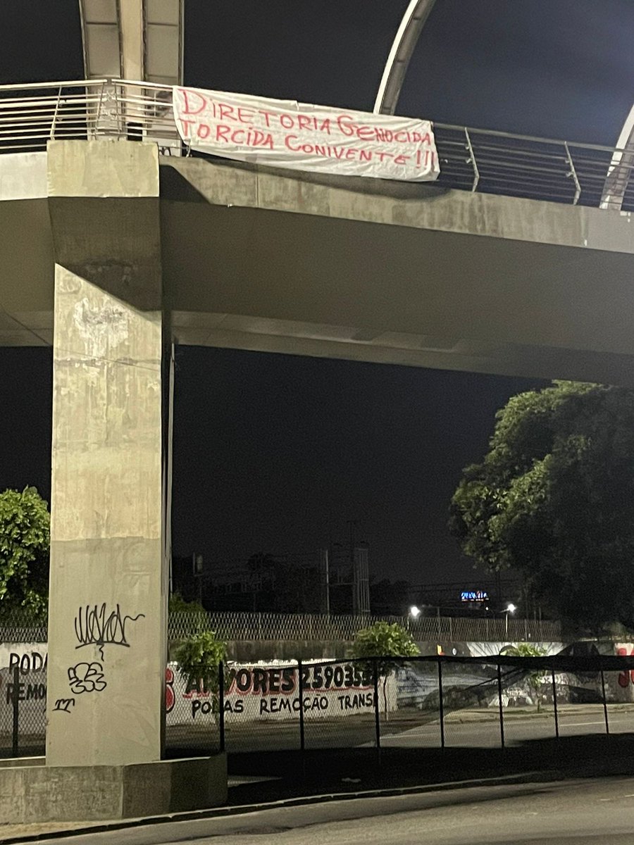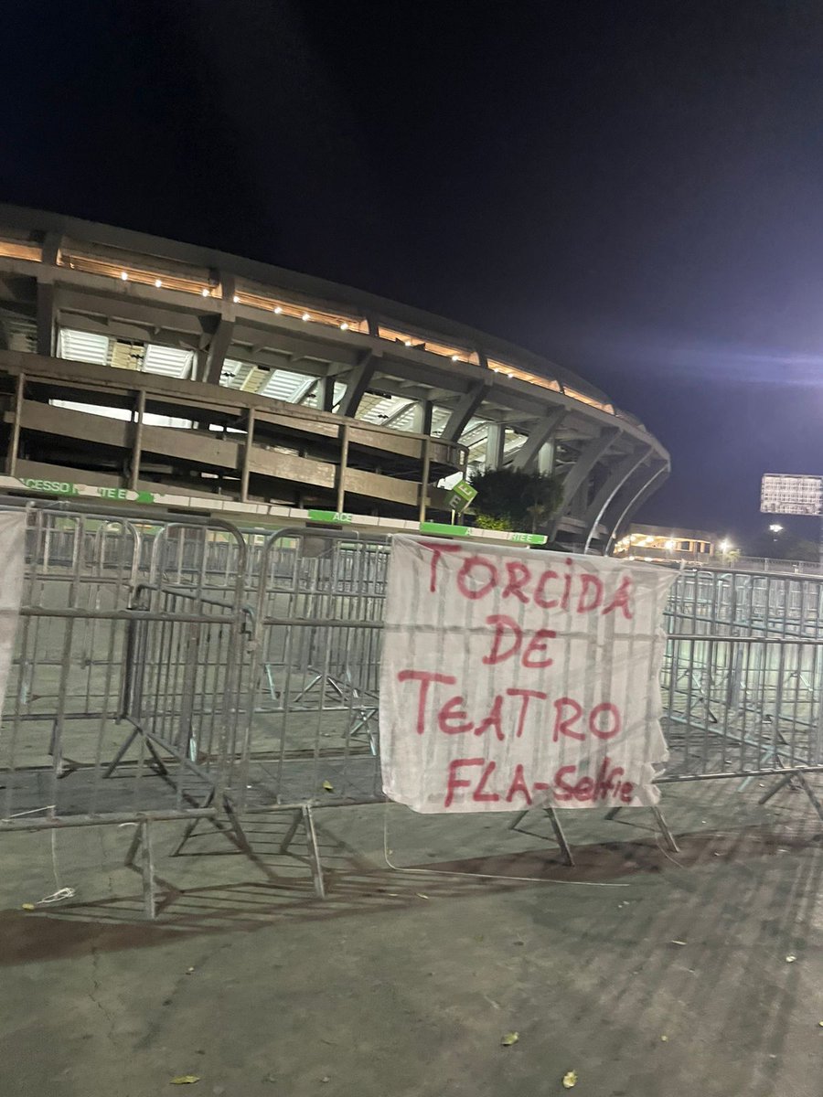 Torcedores do Vasco penduram faixas no entorno do Maracanã com provocações ao rival.