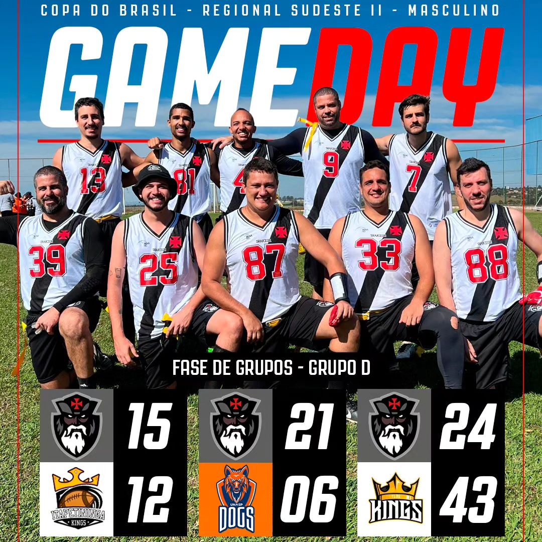 Com 2 vitórias em 3 jogos, o Vasco Almirantes se classifica para os playoffs da etapa regional Sudeste II da Copa do Brasil de Flag Masculino.