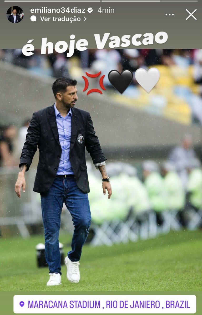 Emiliano Diaz posta foto com paletó do Vasco: 'É hoje Vascão'
