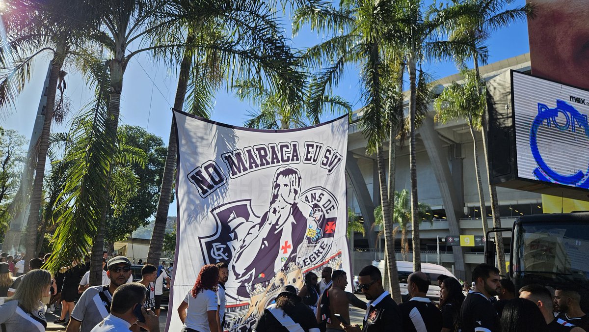 Muitos torcedores tirando fotos com o bandeirão em homenagem ao Pedrinho, ídolo, presidente do clube e agora controlador da SAF do Vasco. @trivela
