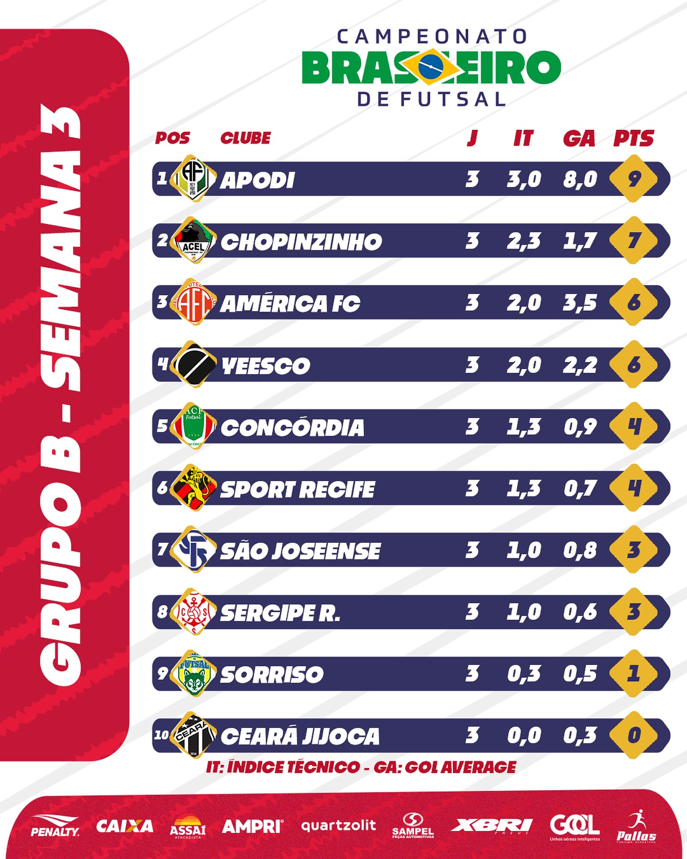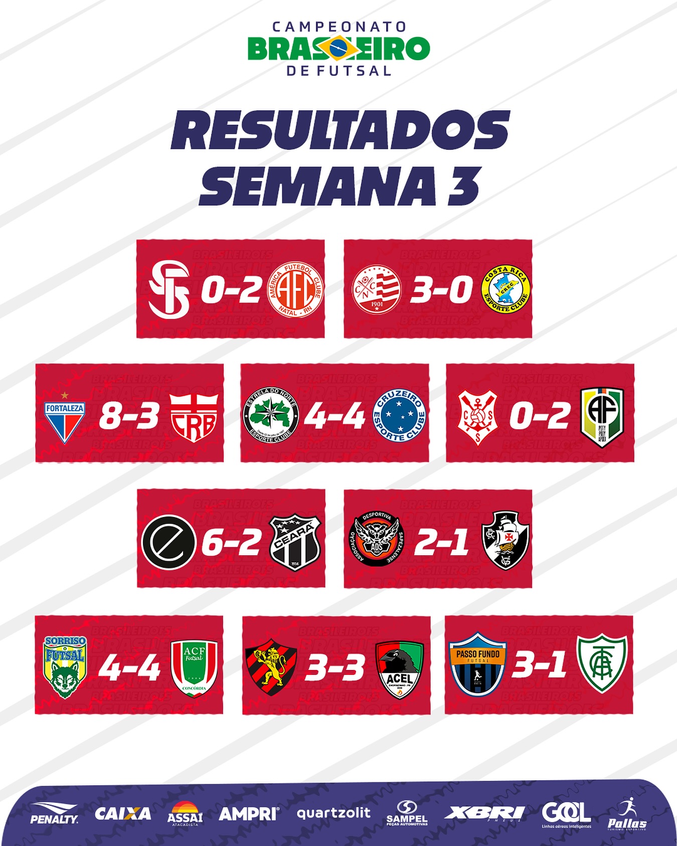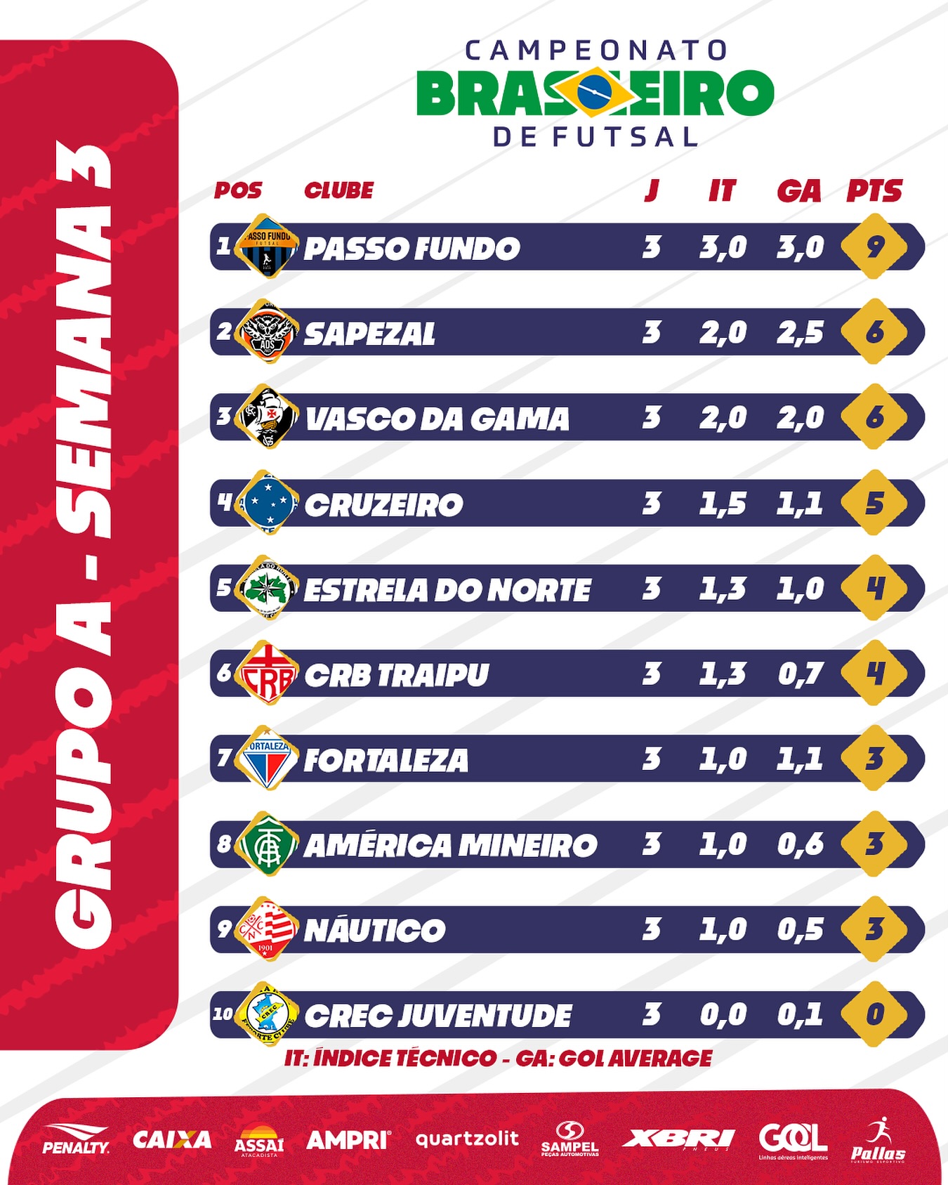 Fonte: NETVASCO (texto), Instagram Campeonato Brasileiro de Futsal (classificação, resultados)