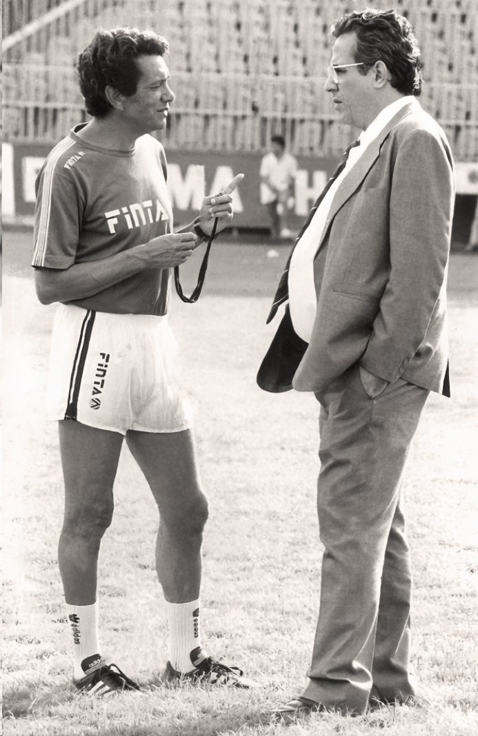 28/11/1989 - Técnico Nelsinho Rosa e Eurico Miranda traçam as diretivas da arrancada final para a conquista do Bi-Campeonato Brasileiro pelo Club de Regatas Vasco da Gama.