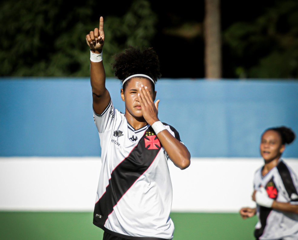 Maria Vitória, de 25 anos, chegou ao Vasco nesta temporada e caiu nas graças da torcida. A Princesinha da Colina é a artilheira do time e tem Vegetti como referência. Ela, inclusive já fez a comemoração do Pirata e se encontrou com o atacante argentino em São Januário.