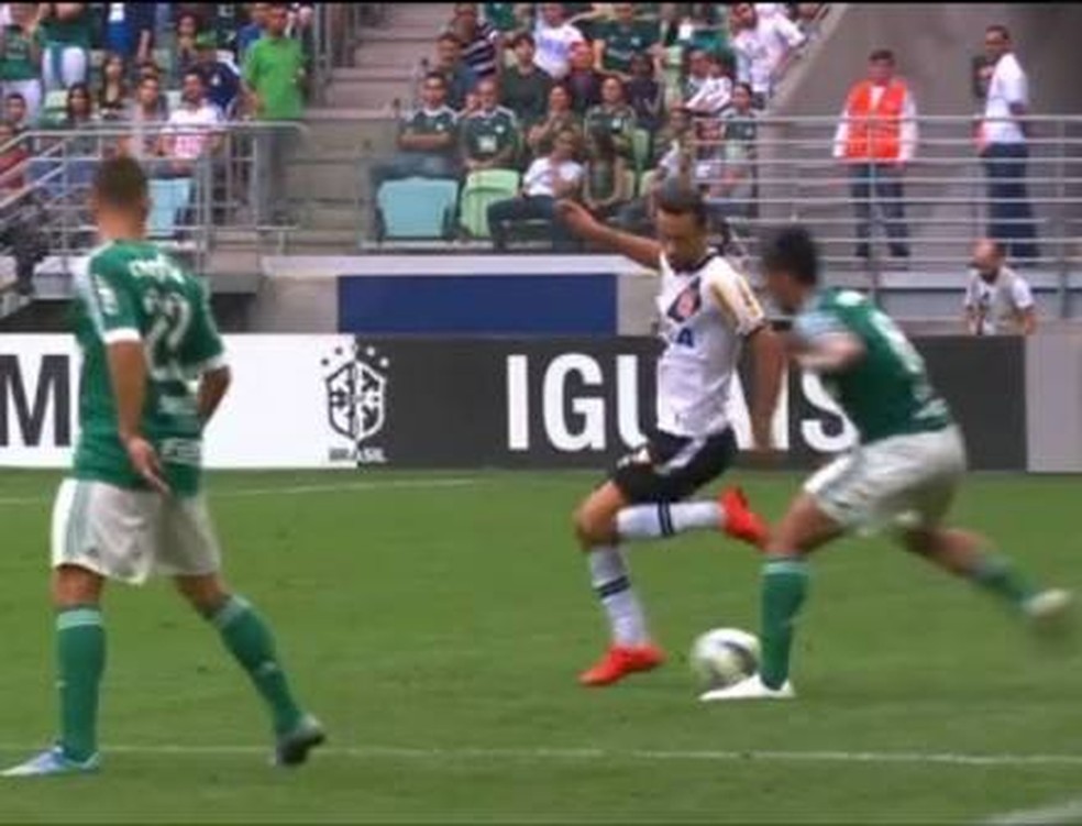 O Vasco teve postura valente no Allianz Parque e foi para cima do Palmeiras desde os primeiros minutos e foi para o intervalo já com a vitória por 2 a 0 encaminhada. O primeiro gol saiu aos 35 minutos, com Rafael Silva completando de cabeça o escanteio cobrado por Nenê pela esquerda. A bola ainda tocou caprichosamente o pé da trave antes de entrar no gol de Fernando Prass.