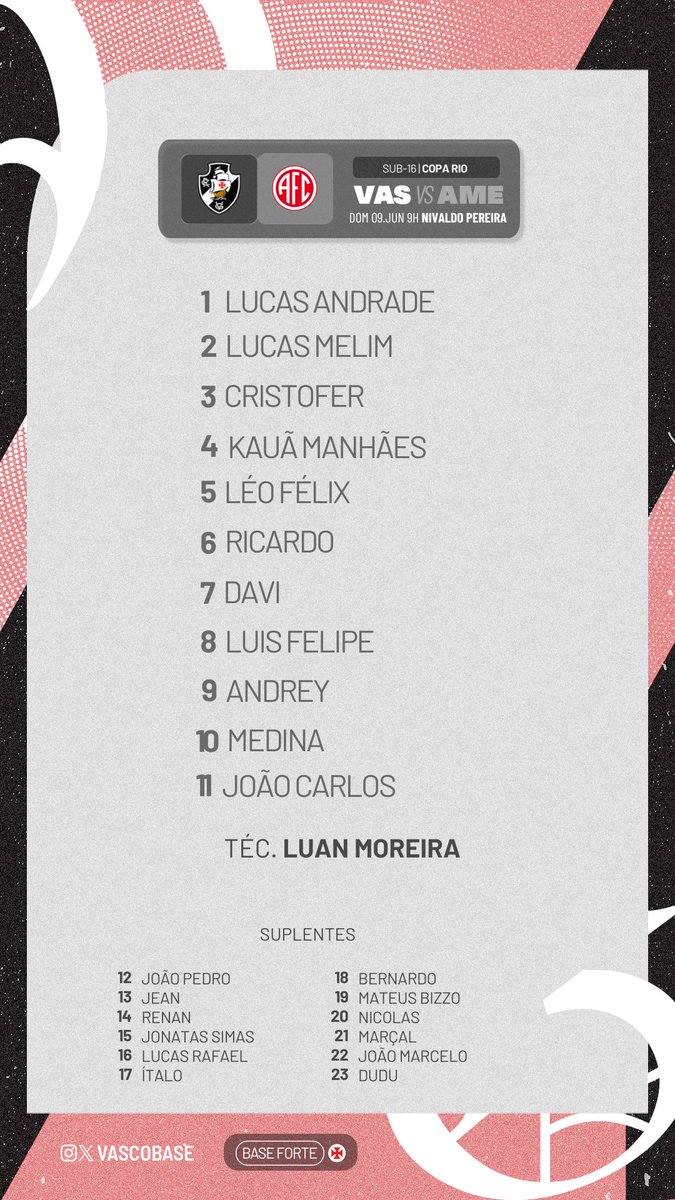 Sub-16 já escalado para enfrentar o América no jogo de volta da semifinal da Copa Rio. O jogo começa às 9h e você pode assistir na VascoTV!