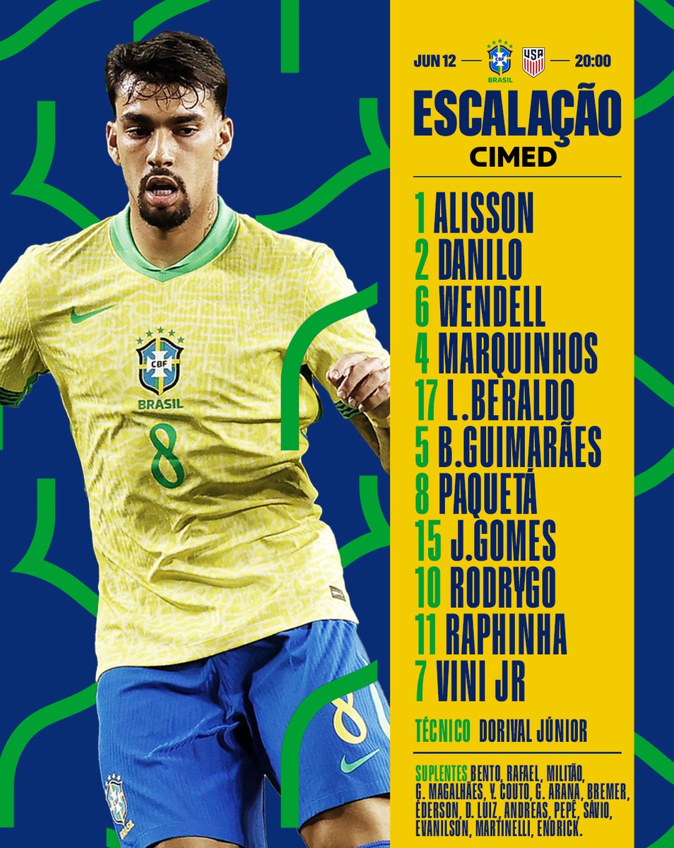 Saiu a escalação @cimedco para Brasil x Estados Unidos! Vestindo a Amarelinha, a Seleção Brasileira entra em campo às 20h, no Camping World Stadium, Florida.