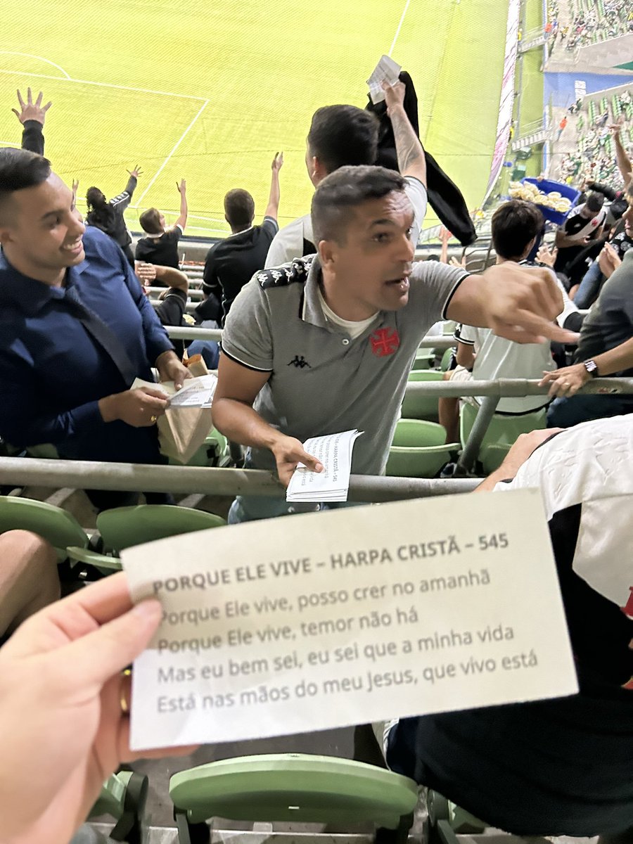 Cabo Daciolo distribui letra de música cristã no Allianz Parque para torcedores do Vasco; veja foto