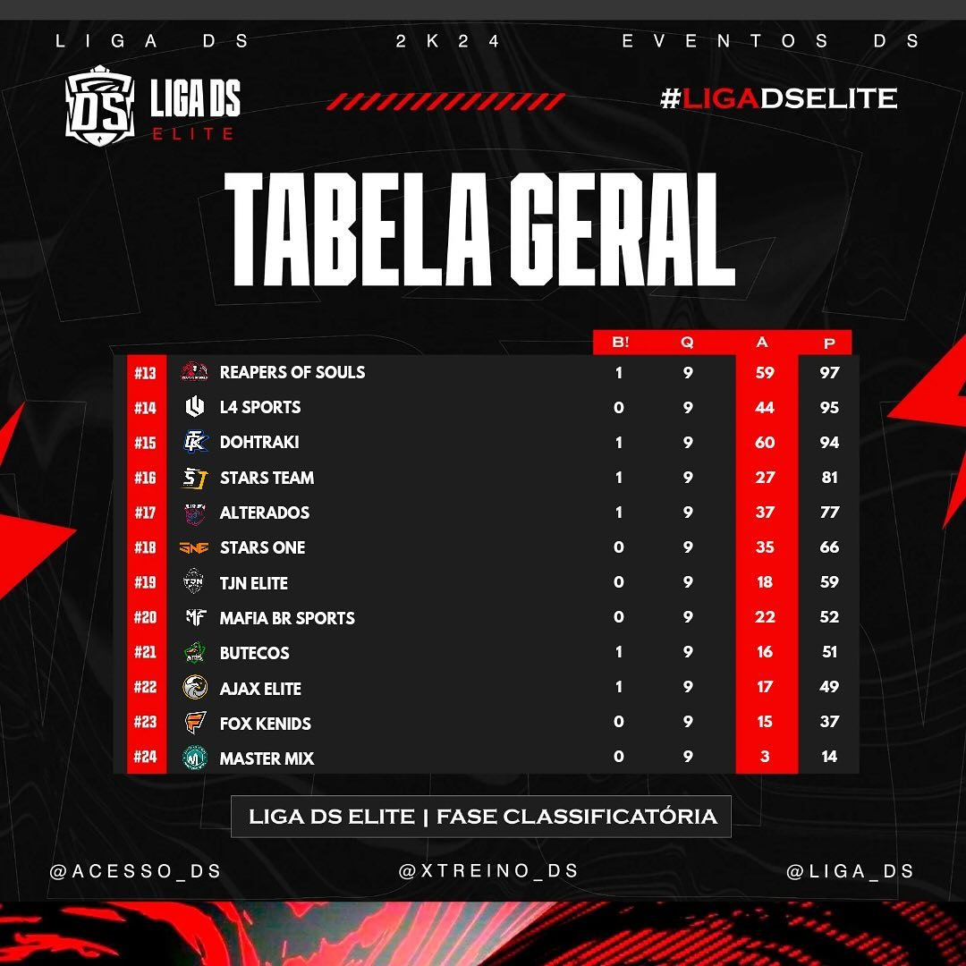 Essas foi as grandes equipes que fizeram um espetáculo na nossa fase classificatória e garantiram uma final pra conta deles, quem será o grande campeão da liga Ds ? As 12 melhores equipes da competição estão na final 🚀🚀