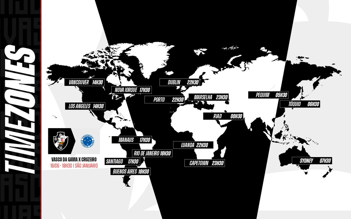 Vasco informa horário do jogo contra o Cruzeiro em várias partes do mundo