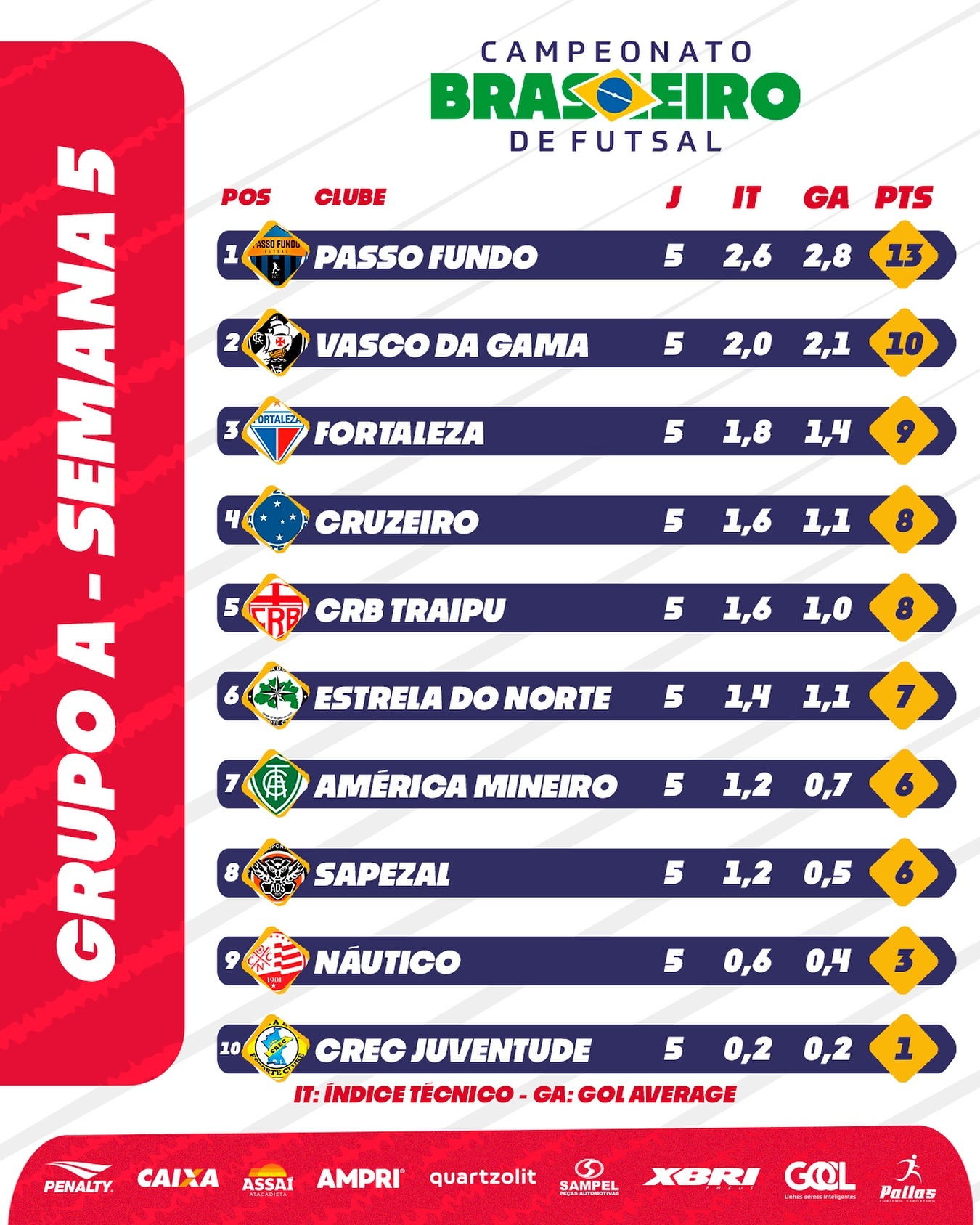 O Grupo A após a Semana 5 do #brasileirofs