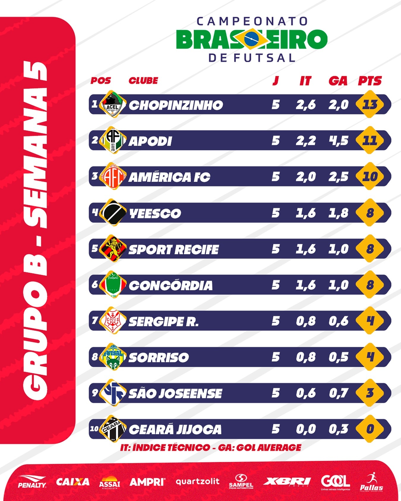 O Grupo B após a Semana 5 do #brasileirofs