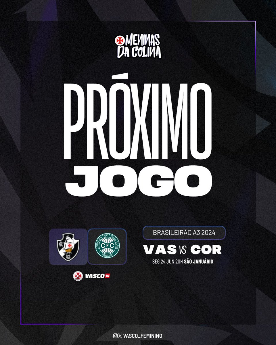 O próximo jogo das #MeninasDaColina é pelo jogo de ida das quartas de finais do Brasileiro, na próxima segunda (24/06), às 20h, em São Januário. A VascoTV fará a transmissão da partida! 🚀💢