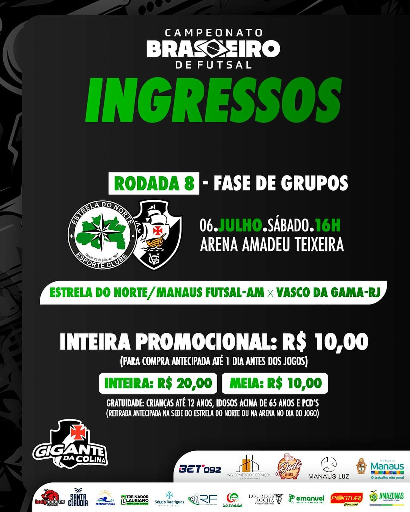 Futsal: Gigante da Colina Manaus já vende ingressos para Estrela do Norte x Vasco, no dia 06/07, pelo Brasileiro