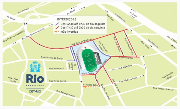 CET-Rio detalha interdições no entorno de São Januário para Vasco x São Paulo