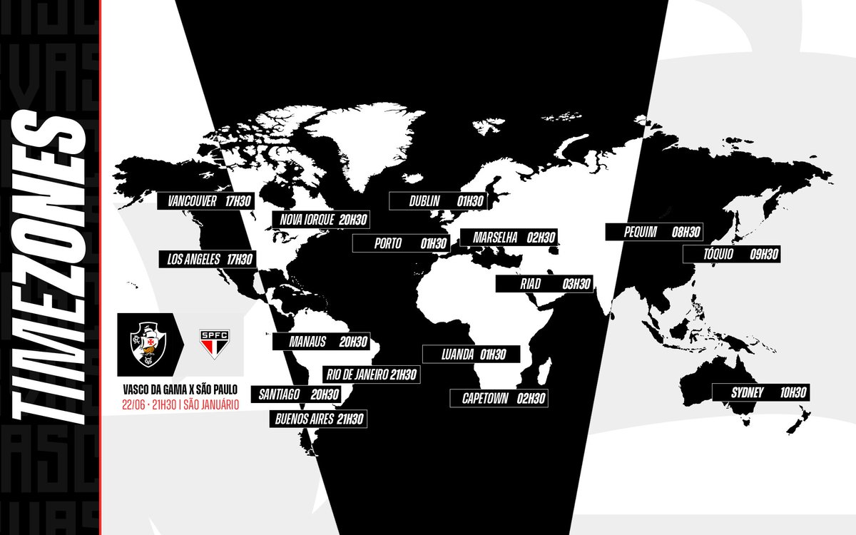 ⏰🌎 Horário do pontapé inicial de #VASxSAO em diferentes fusos! 💢