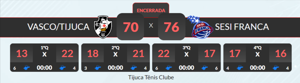 Basquete Base: Vasco perde para o Franca por 76 a 70 pela LDB Sub-22
