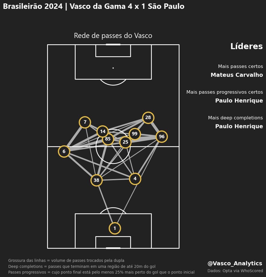 Vasco da Gama 4 x 1 São Paulo | Rede de passes