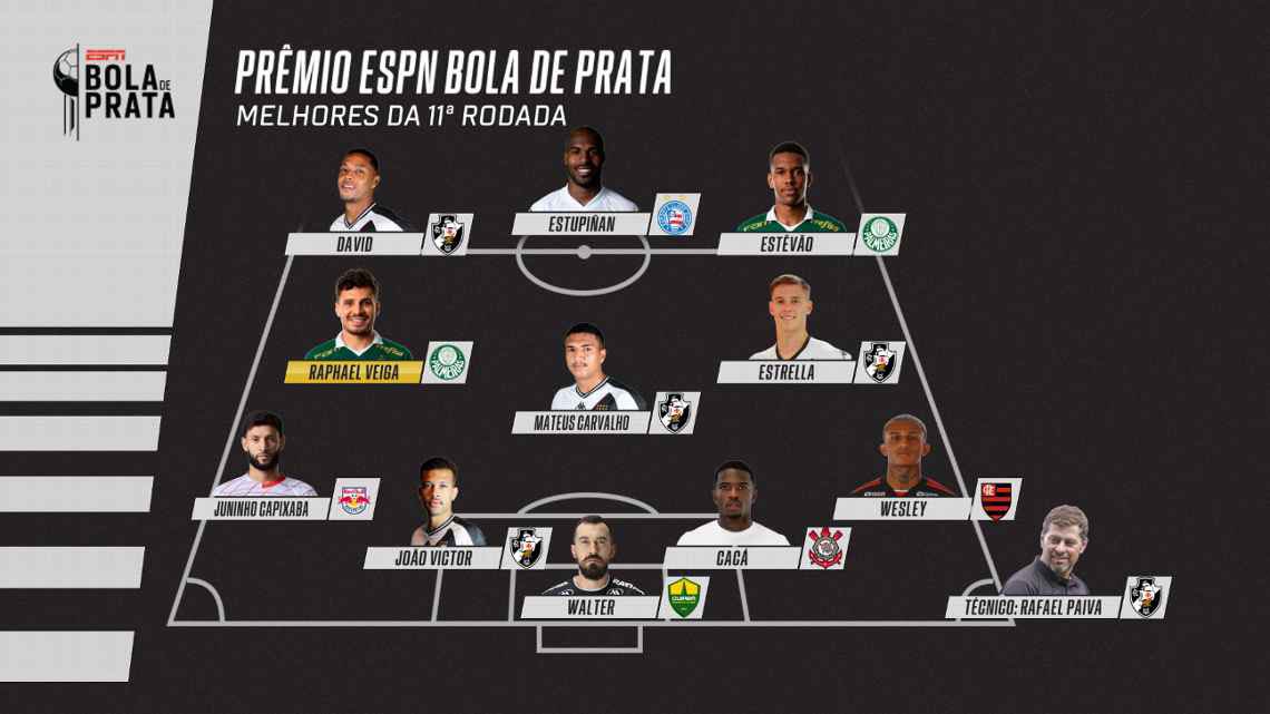Vasco domina a seleção da 11ª rodada no Prêmio ESPN Bola de Prata.