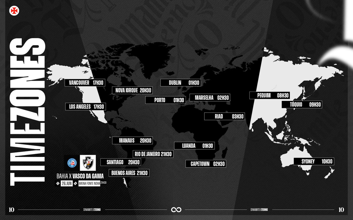 Vasco informa horário do jogo contra o Bahia em várias partes do mundo